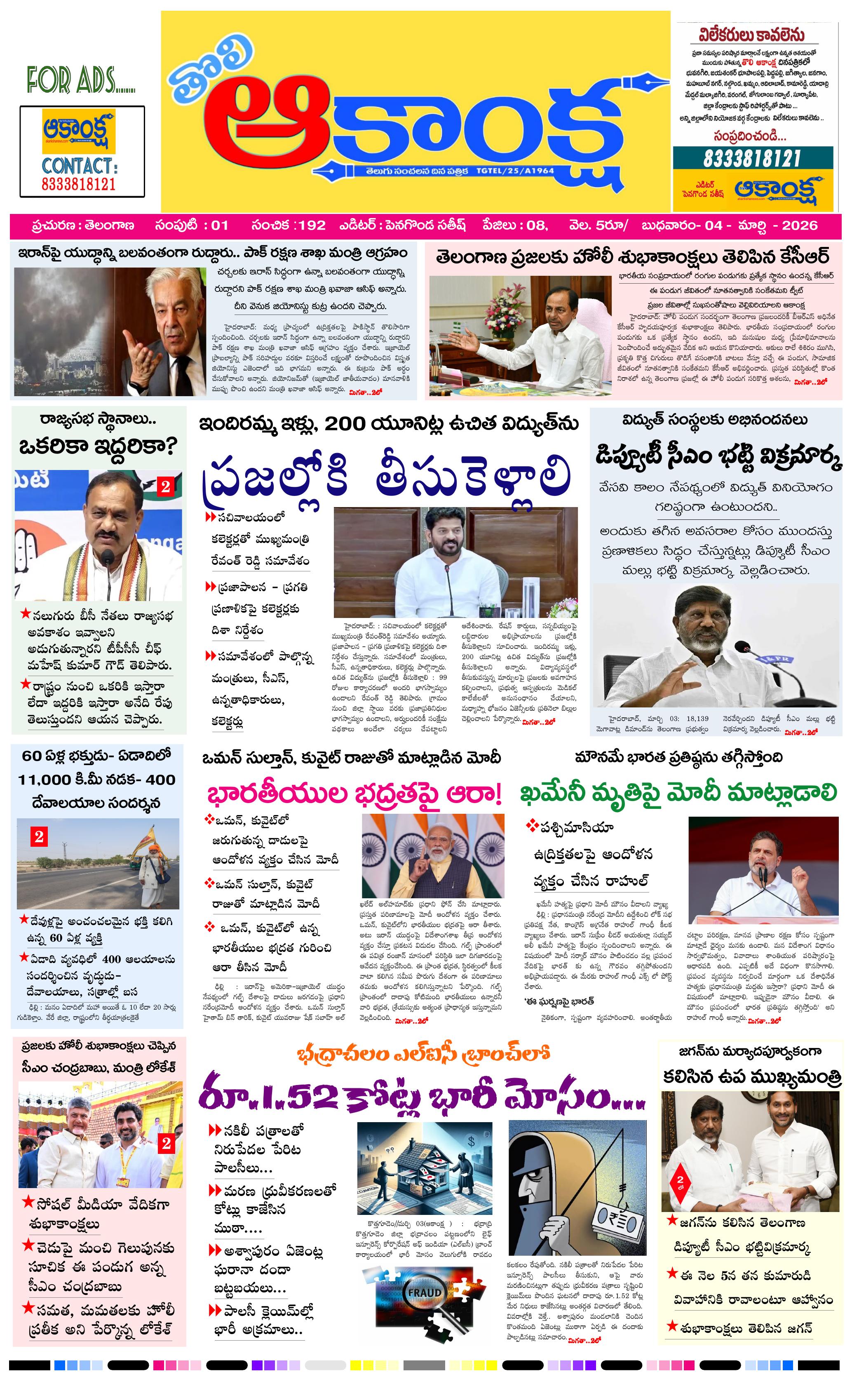 WELL COME TO తోలి ఆకాంక్ష దినపత్రిక ..... విలేకర్లు కావలెను. సంప్రదించండి. సెల్ నెంబర్ : 8333818121